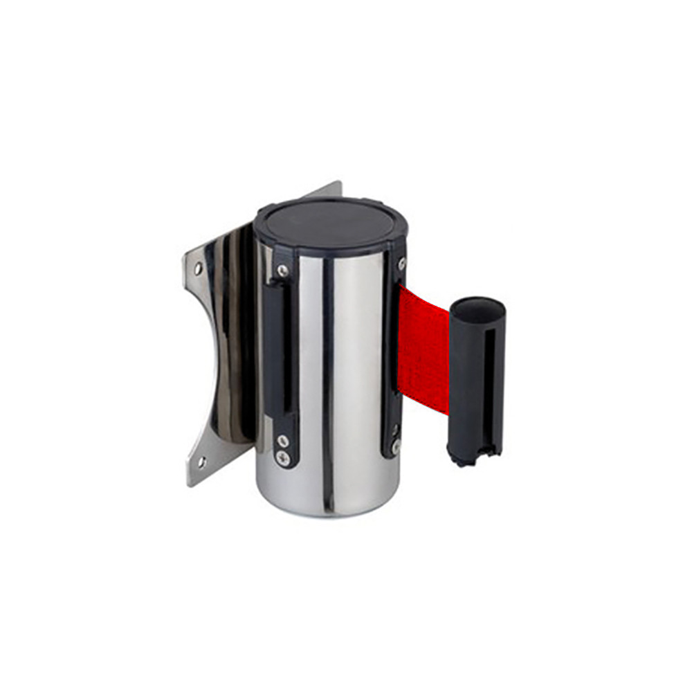 Attacco murale cromato con nastro retrattile rosso, da agganciare ad una colonnina di delimitazione. Ideale per aree aperte al pubblico, per un maggior ordine e rispetto della privacy. Nastro rosso estensibile fino a 180 cm con altezza di 4,8 cm, aggancio in acciaio con dimensioni di (L) 16 x (P) 9 x (H) 21 cm.